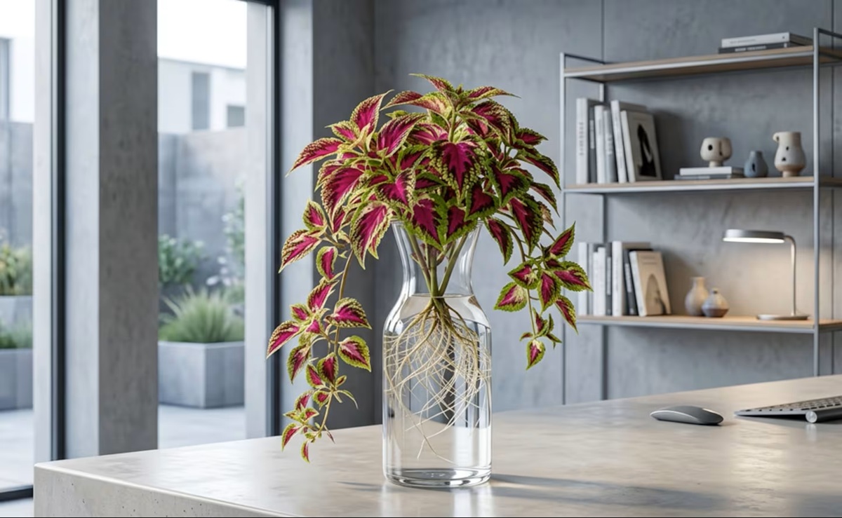 Coleus je menej známa voľba, ale vďaka svojim farebným listom je veľmi dekoratívna.