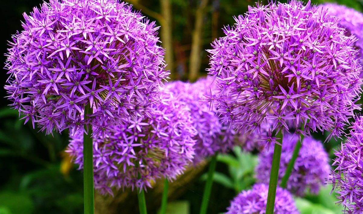 • Okrasný cesnak „Purple Sensation“ – dorastá do výšky asi 100 cm a vyniká intenzívnymi fialovo-purpurovými, pravidelnými guľovitými kvetnými hlavami, ktoré pekne kontrastujú so zeleňou trvaliek.
