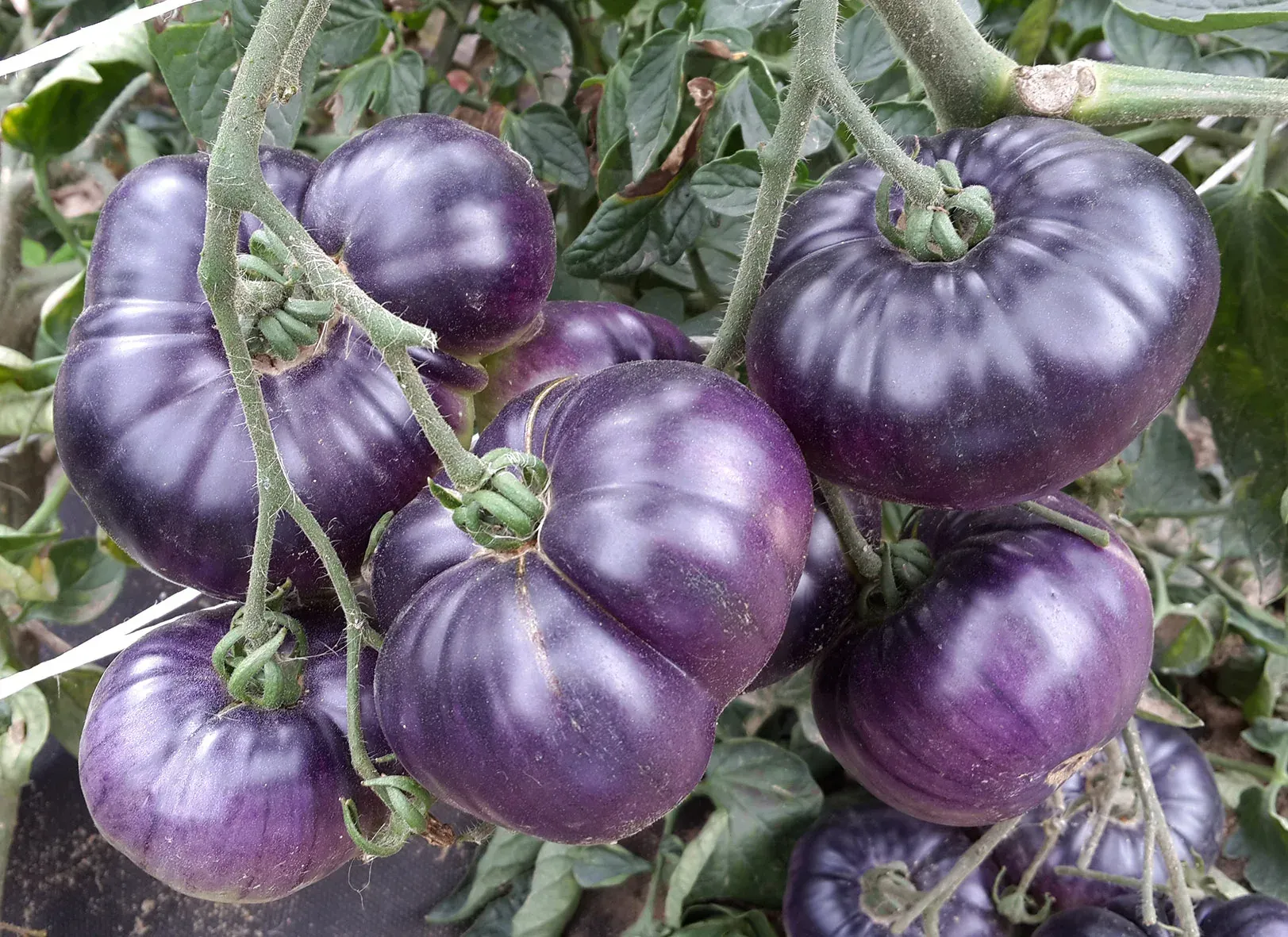 Čas zberu: Fialové paradajky kvôli svojej farbe dlho vyzerajú ako zrelé. Skúšajte ich na mäkkosť: plod by mal byť mierne poddajný a jeho spodná časť jasne červená.