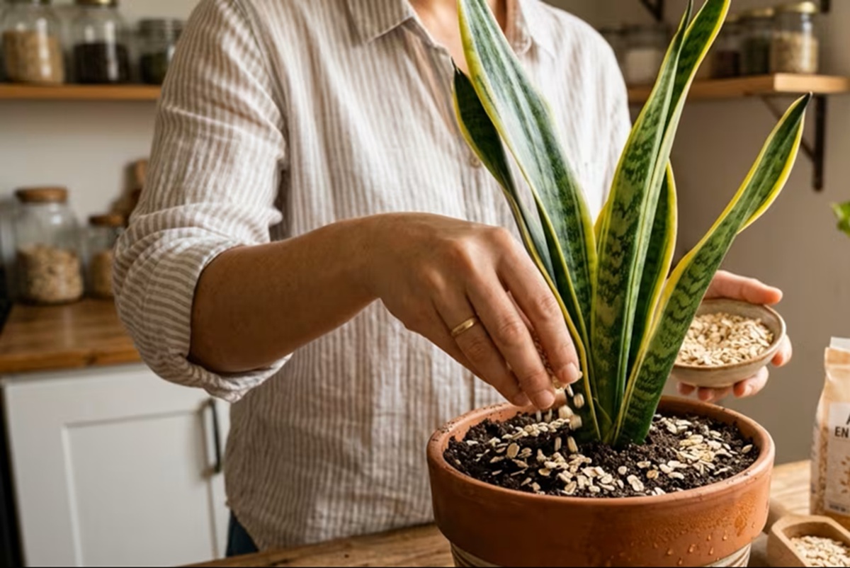 Jazyk svokry, známy aj ako Sansevieria, je jednou z najobľúbenejších rastlín vďaka svojej odolnosti a ľahkej starostlivosti. Existuje však domáci trik, ktorý sa stal trendom: pridať ovsené vločky do zeminy v črepníku, aby rastlina rástla silnejšia a zdravšia.