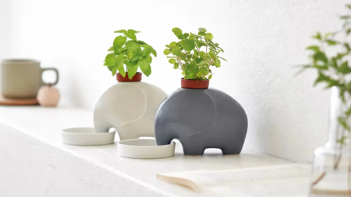 Kvetináč v tvare slona je možné zakúpiť online za cenu takmer 25 eur. Keramická sada je k dispozícii v dvoch variantoch: biela (so semenami sladkého bazalku) a sivá (so semenami jablčnej mäty).