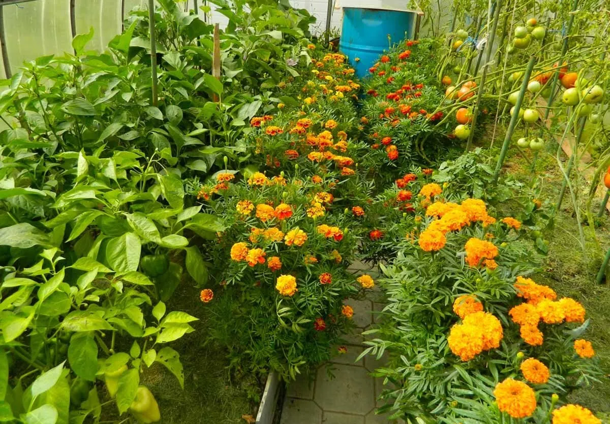 - Paradajky + Aksamietnica: To je klasika roku 2026. Korene aksamietnice vylučujú látky, ktoré zabíjajú pôdne nematódy, a ich ostrá vôňa mätie vošky a molice.